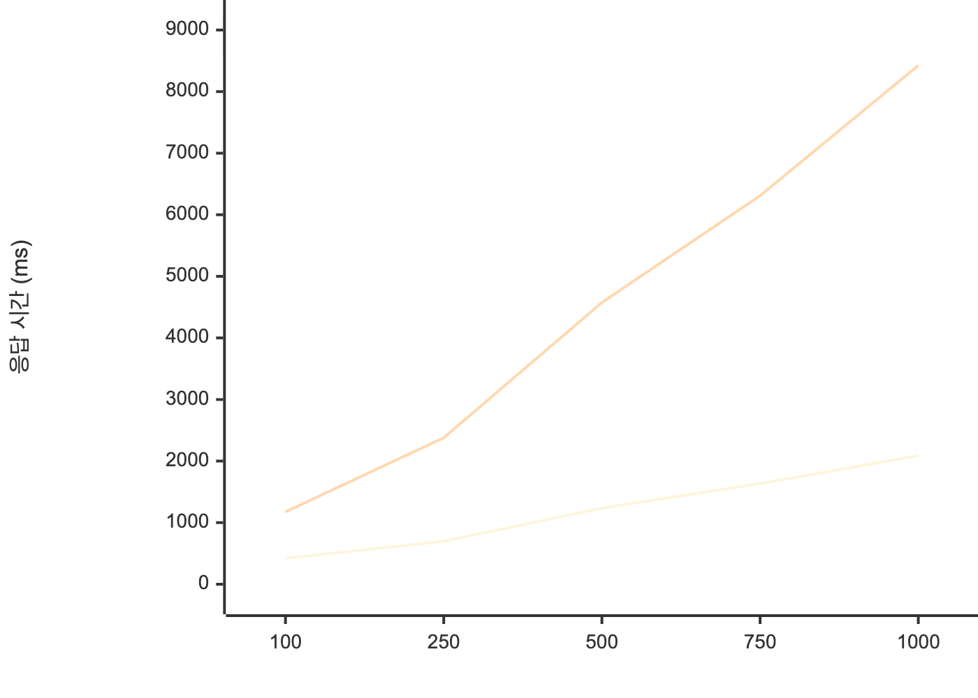 | 동시 요청 수 | 비관적락 | 낙관적락 | 성능 차이 |